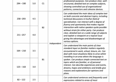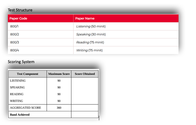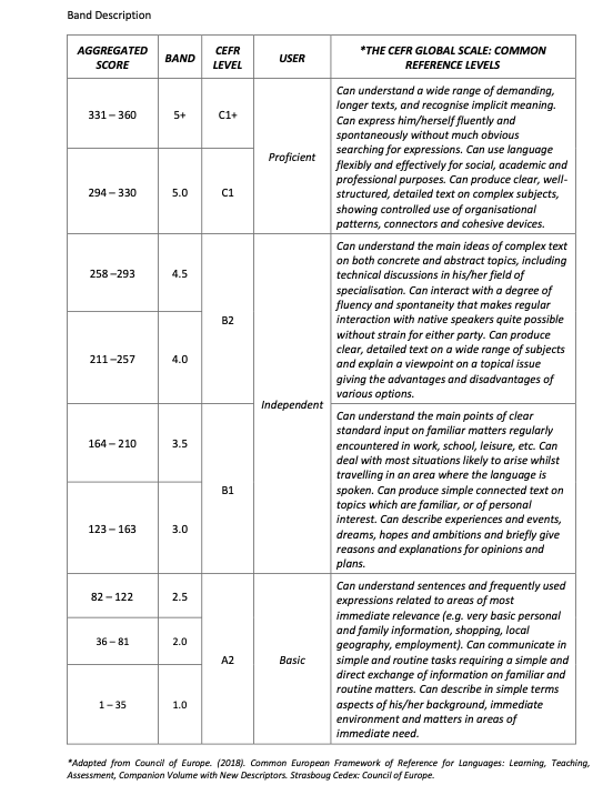 Each component is scored separately. Final results are presented as an overall Band from 1 to 6.